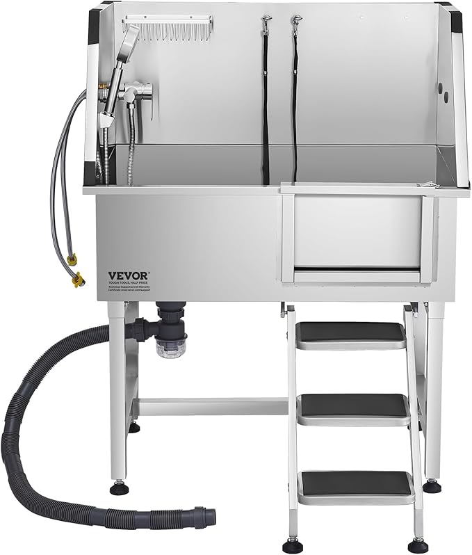 VEVOR Stainless Steel Dog Washing Station, 38 inch Pet Grooming Tub w/Storage Stairs, Faucet & Showerhead & Soap Holder Dog Bathtub for Medium & Small Pets (Right Door)