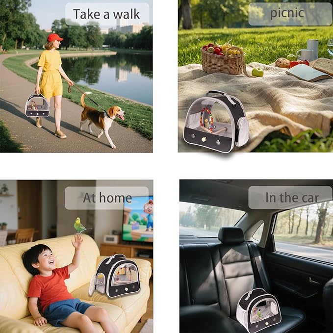- New Update Design: 2-side transparent window design small bird carrier cage, meet with that pets like to pay close attention to the surrounding environment, and allows you to see parrot everything inside the handbag. At the same time, the transparent window is separated from the bottom of the zipper, making it easier and safer for pets to enter and exit