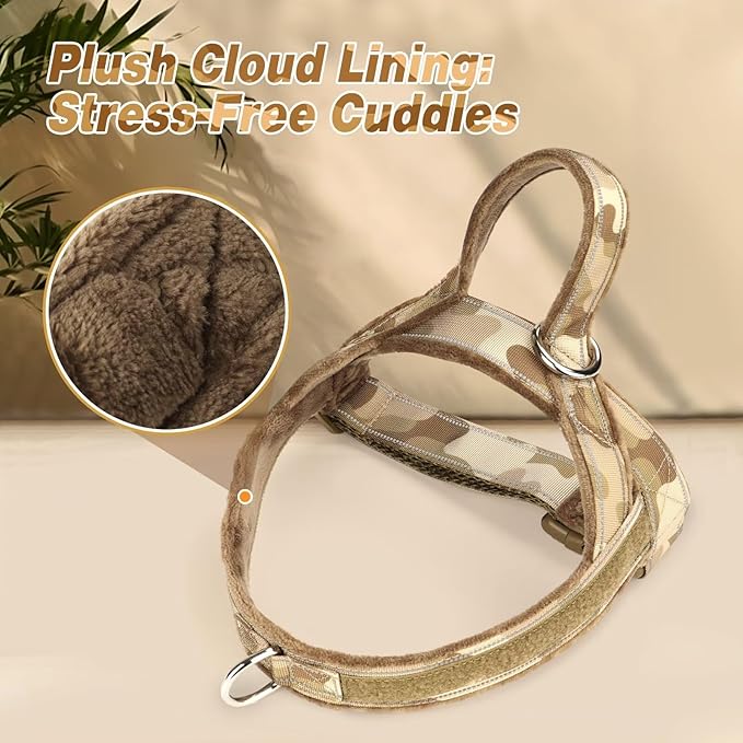 Forestpaw No Pull Dog Harness - Soft Flannel Padded Tactical Dog Vest Harness with Quick Release Buckle, Adjustable Reflective Pet Harness for Medium Dogs Walking Training,Brown Camouflage M