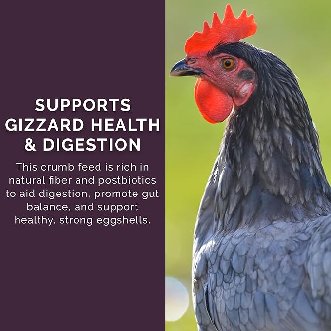 - Supports Gizzard Health & Digestion: This 25-pound bag of crumb feed contains natural fiber and postbiotics that help maintain digestive wellness and support strong eggshells.