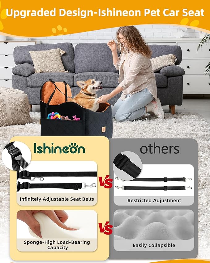 - Luxurious Dog Carseat with Ultimate Comfort:Dog car seat for small dogs features high-density memory foam in the interior, providing exceptional weight support that outperforms eggshell foam and effectively reducing the impact of road bumps,. Your pet can relax on the armrest without the dog car seat medium sized dog collapsing. The ultrasonic crystal velvet fabric is soft and gentle, creating a cozy environment for your furry friends.