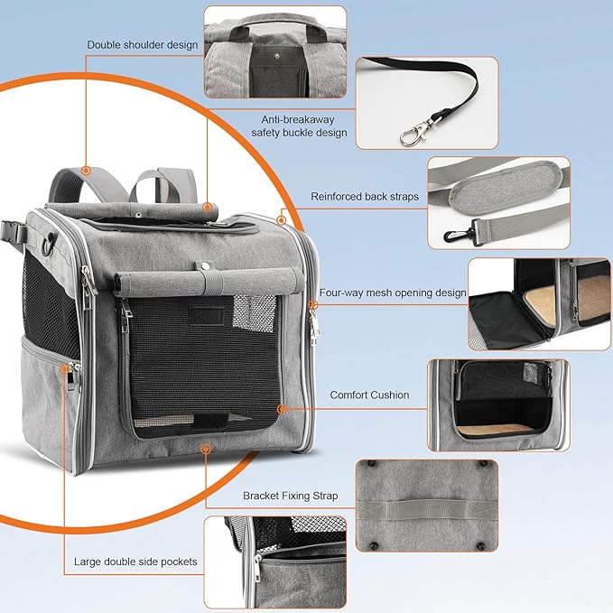 - Versatile Pet Carrier: This multifunctional dog bike basket is not only perfect for cycling but also doubles as a backpack. Adjust it to suit your and your pet's needs for daily outings or adventurous trips. The foldable design provides easy storage when not in use, while multiple side pockets and a handy waste bag dispenser help keep your pet essentials organized.