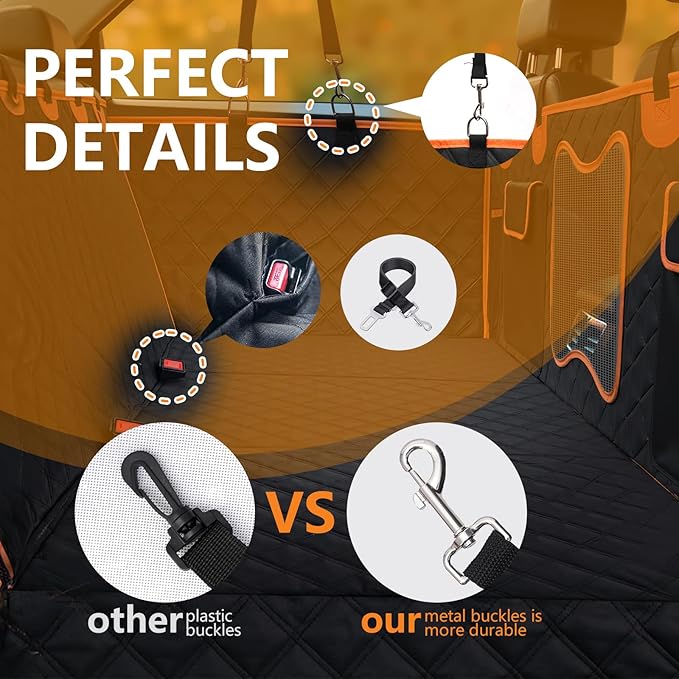 - Waterproof & Anti-Slip Design:Crafted using an advanced heat-pressing process with 7 layers of materials, including 600D Oxford fabric and 210D Oxford fabric, Our back seat cover provides superior waterproof protection. The anti-slip bottom ensures your dog won’t slide off during the ride.