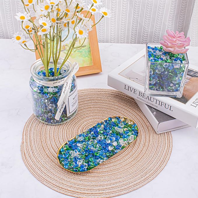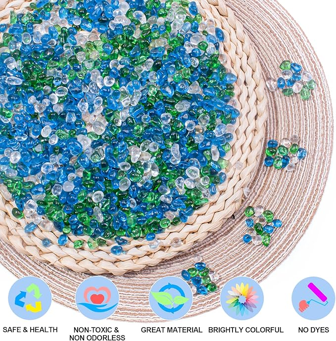 - Features: The glass gem stones are like river gravels, no dye or other methods of artificial coloring is used, never faded. Smooth edges no harm to animals and plants, you can rest assured that using. NB the glass pebbles are 0.93LB Heavy Enough BUT SMALL BAG