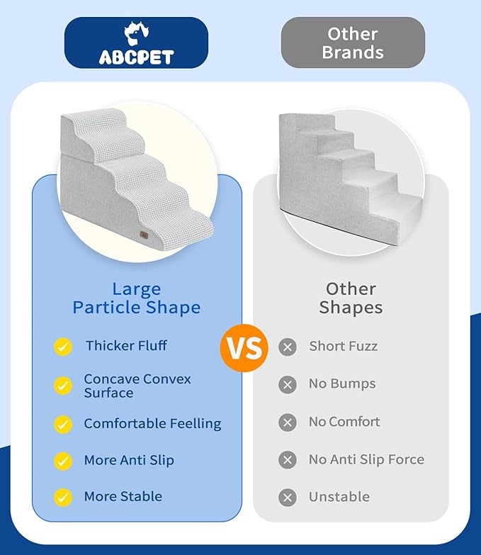 - Stronger Grip Anti-slip- The surface of this dog steps is made of larger fluffy particles. Stronger grip help your pet climbing to high bed or other surface, easily and safely. Combined with antislip bottom, this dog stair maintain stability during pet rushing to prevent pets from slipping