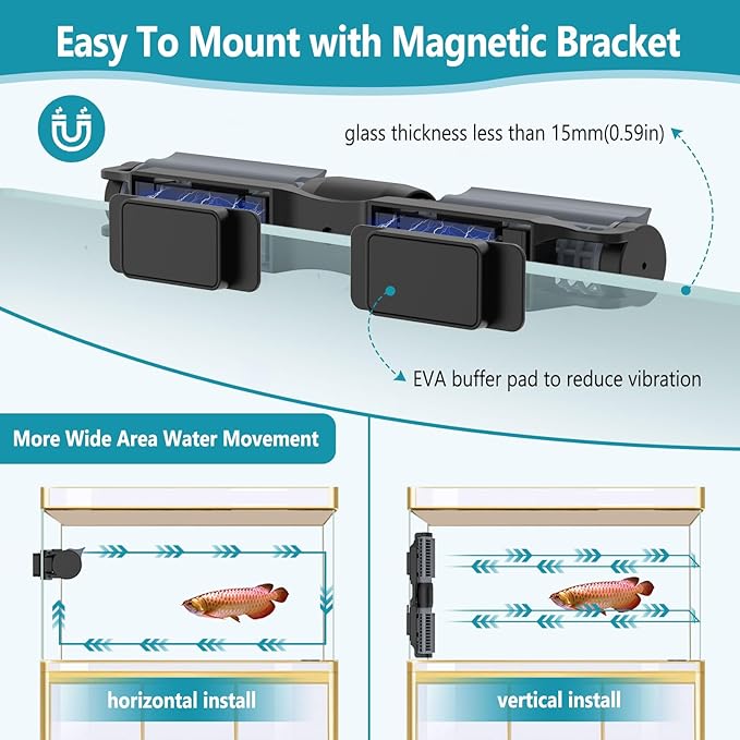 - Safe Low Voltage: Power 25 watt, use DC 24V working voltage, stable and safety. Come with a magnet bracket is strong enough to install securely on the 15mm thick tank. Recommend for 75 -250 gallons aquarium up to 39" in length